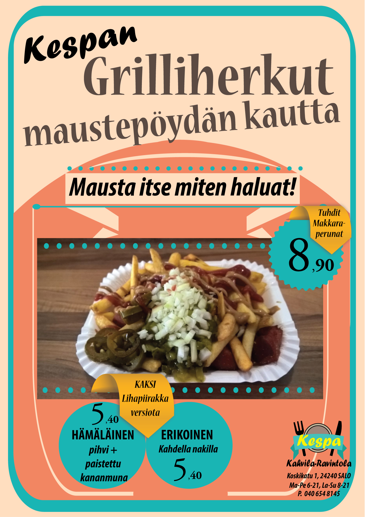 Salon keskustan tuntumassa Koskikadulla sijaitseva Kahvila-Ravintola Kespa tarjoaa maukasta kokkien tekemää ruokaa sekä hyvää kahvia.