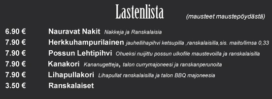 Lounasbuffet lapset 1 € / ikävuosi 12 vuoteen asti.