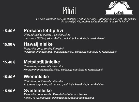 A La Carte listalta maukkaat pihvit
